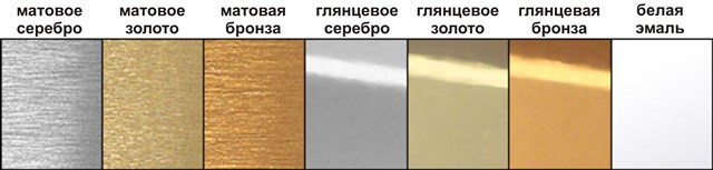 Цвета: Золото глянец, золото шлифованное, серебро глянец, серебро матовое